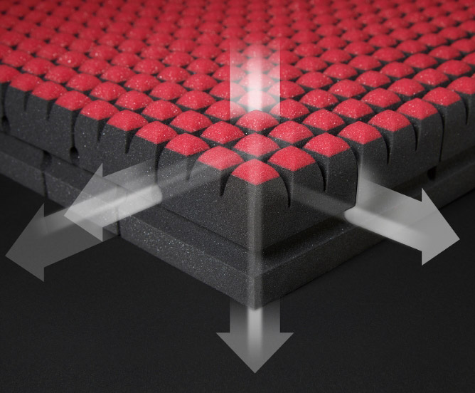 表面には約1800個(シングルサイズ)の点が配置されており、この凹凸構造によって体をバランスよく支えます。