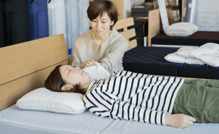 実際に寝て、触って、自分の体に合う高さや感触を体験してください。